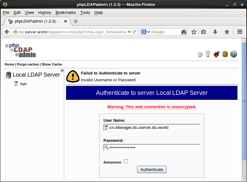 phpLDAPadmin をインストールして Web ブラウザ経由で LDAP サーバーの管理ができるように設定します。