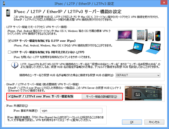 YAMAHA ルータの設定を行う前に、まず、SoftEther VPN の IPsec 機能の設定を行う必要があります。