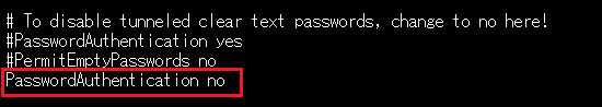 PasswordAuthentication yes ↓ PasswordAuthentication no