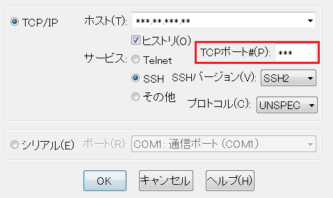 「TCPポート」にSSH接続用に指定したポート番号を入力後、「OK」をクリックします。